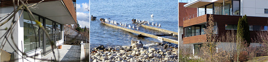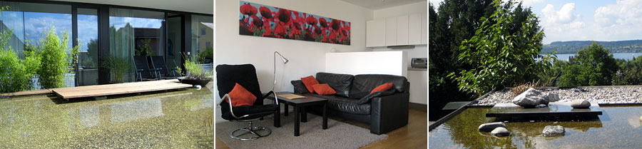 Die Wohnung, mit nach Süden gelegener großer Terrasse und Wassergarten, liegt an einer ruhigen Wohnstrasse (Zone 30). Alle Ausflugsziele liegen vor Ihrer Haustür, als Nahziel wählen Sie einen Spaziergang.